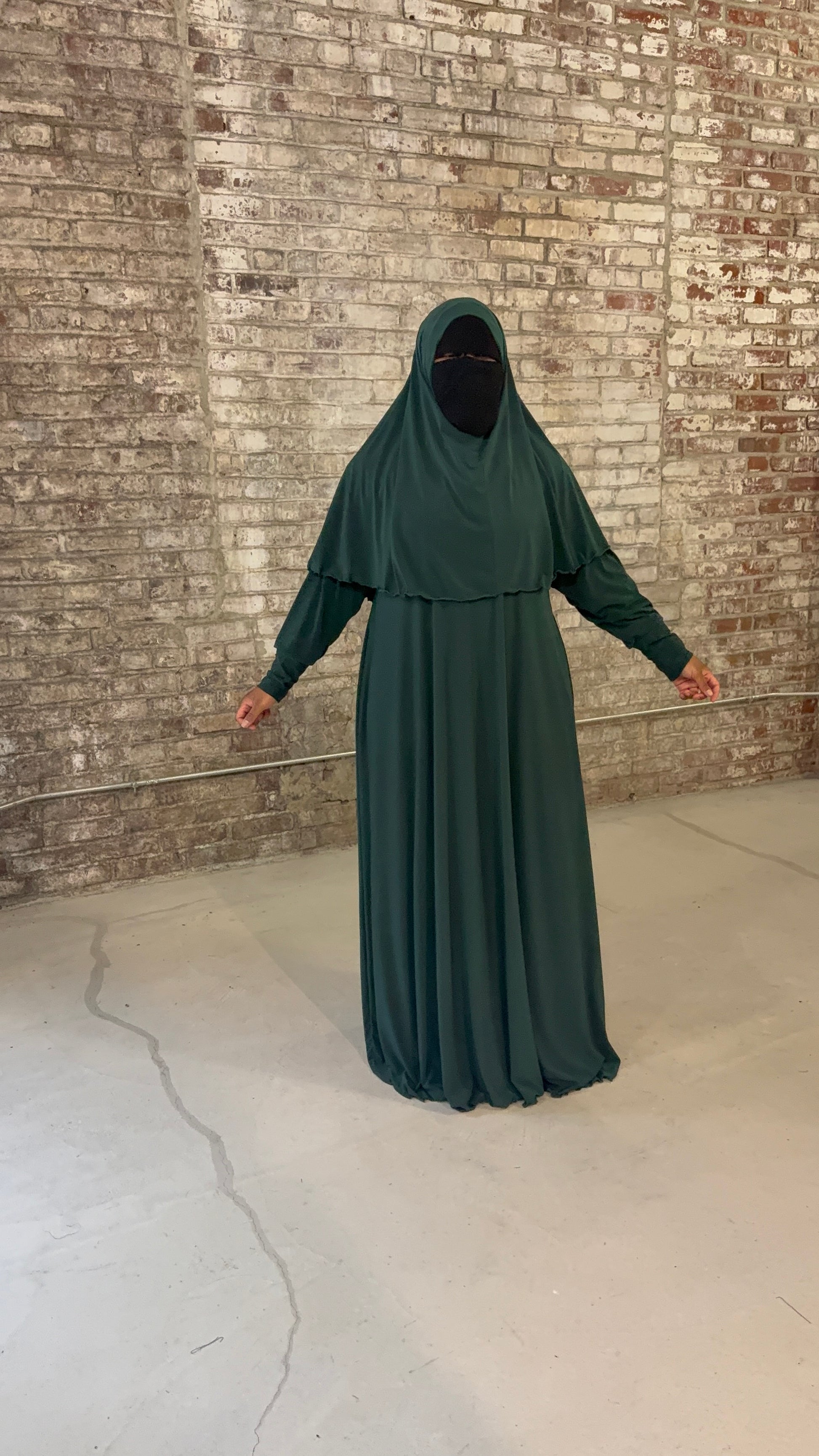Our Laila abaya is an A-line with the out mid-length overhead khimar. Our A-line also comes with pockets and cuffs