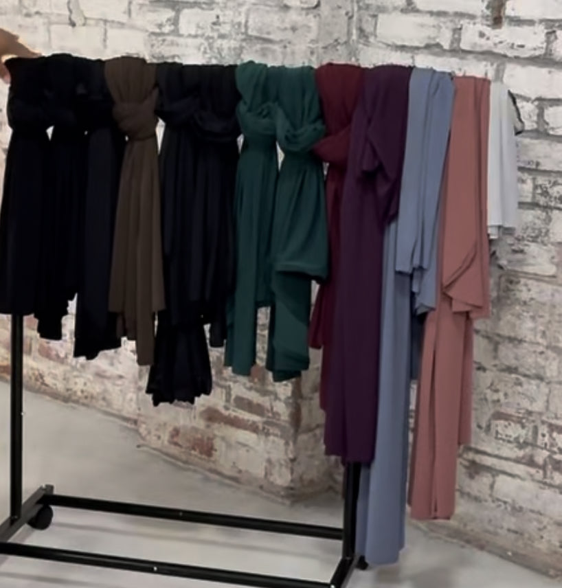 Shayla Hijabs are 30 * 60 in lengths with a serge finish or you can have a clean hem finish