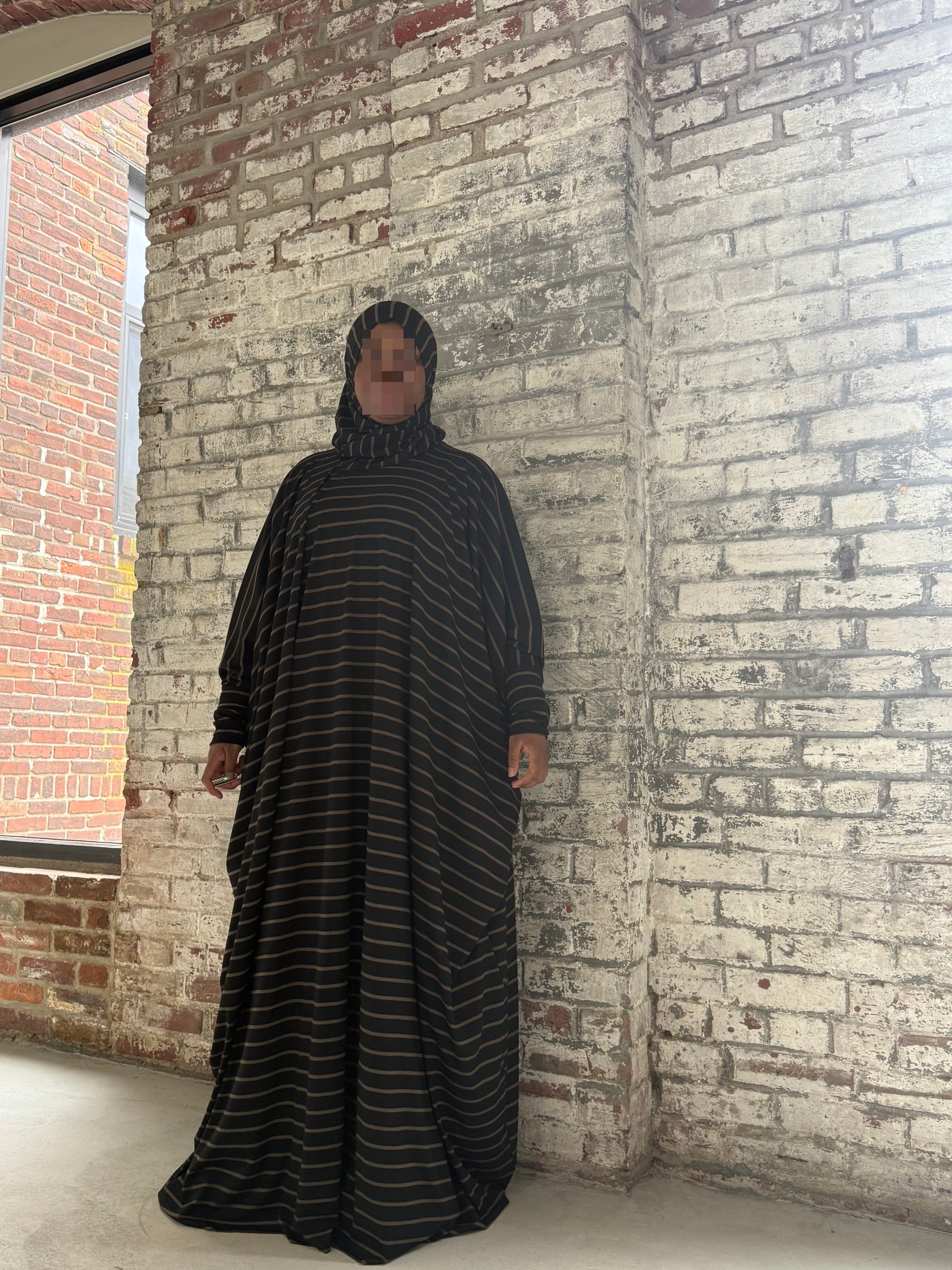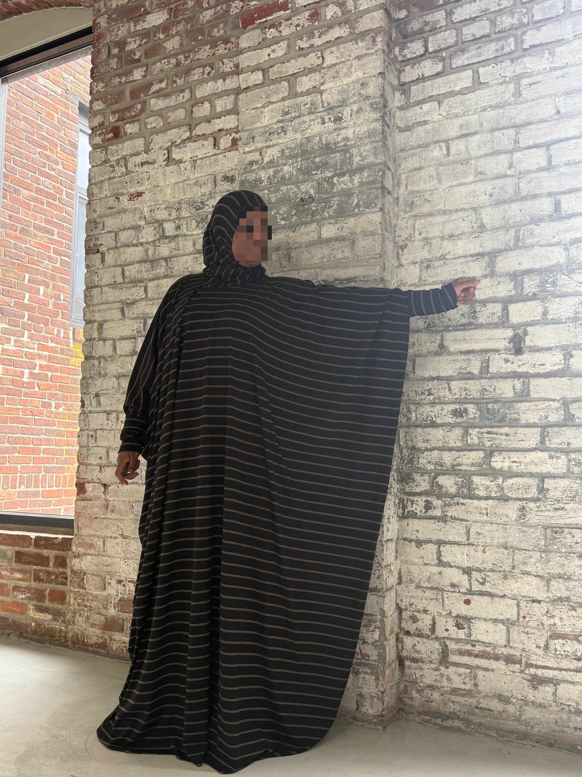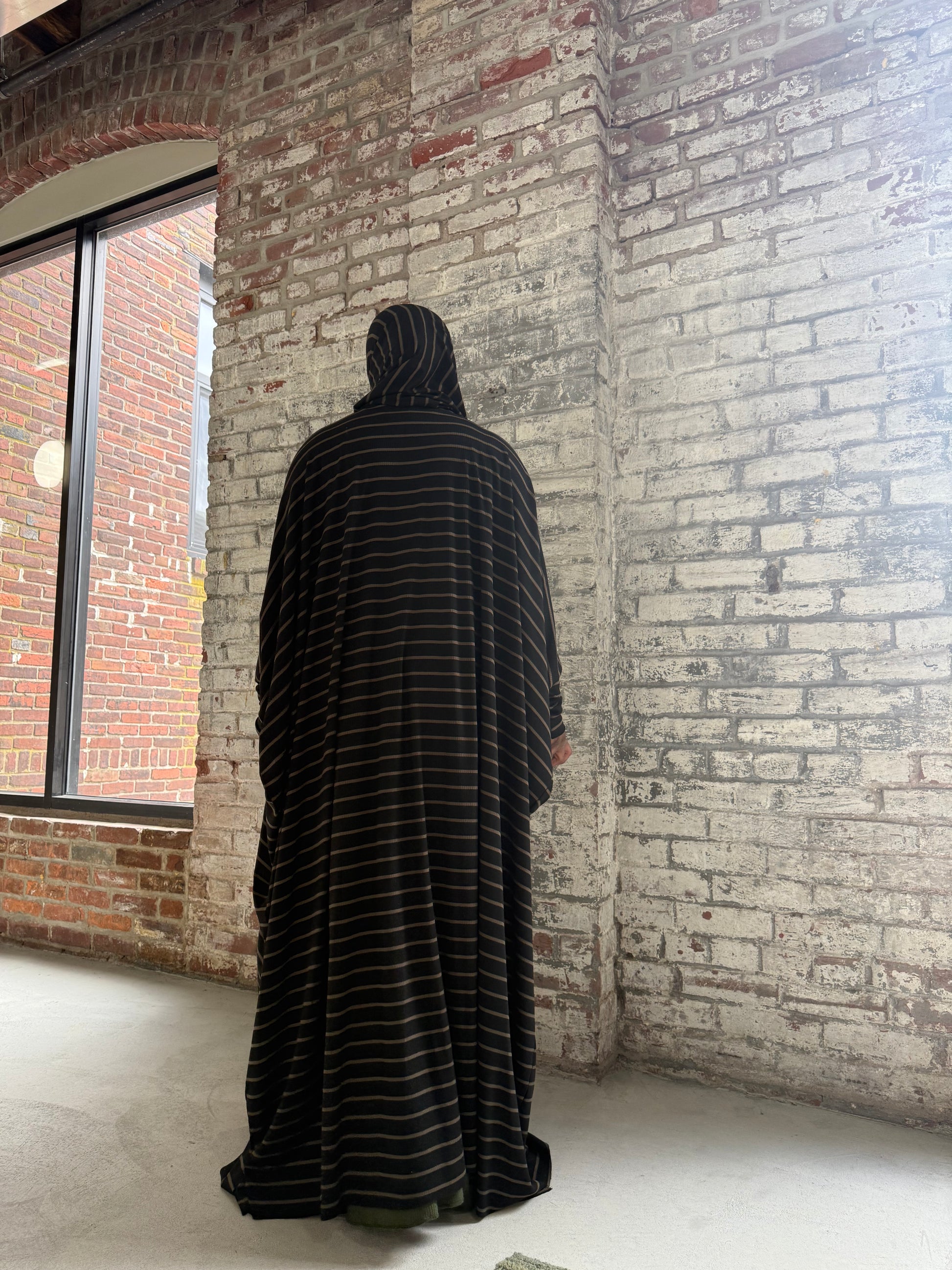 Striped Khaftan Abaya OSF. This comes with the head attached and cuffs.