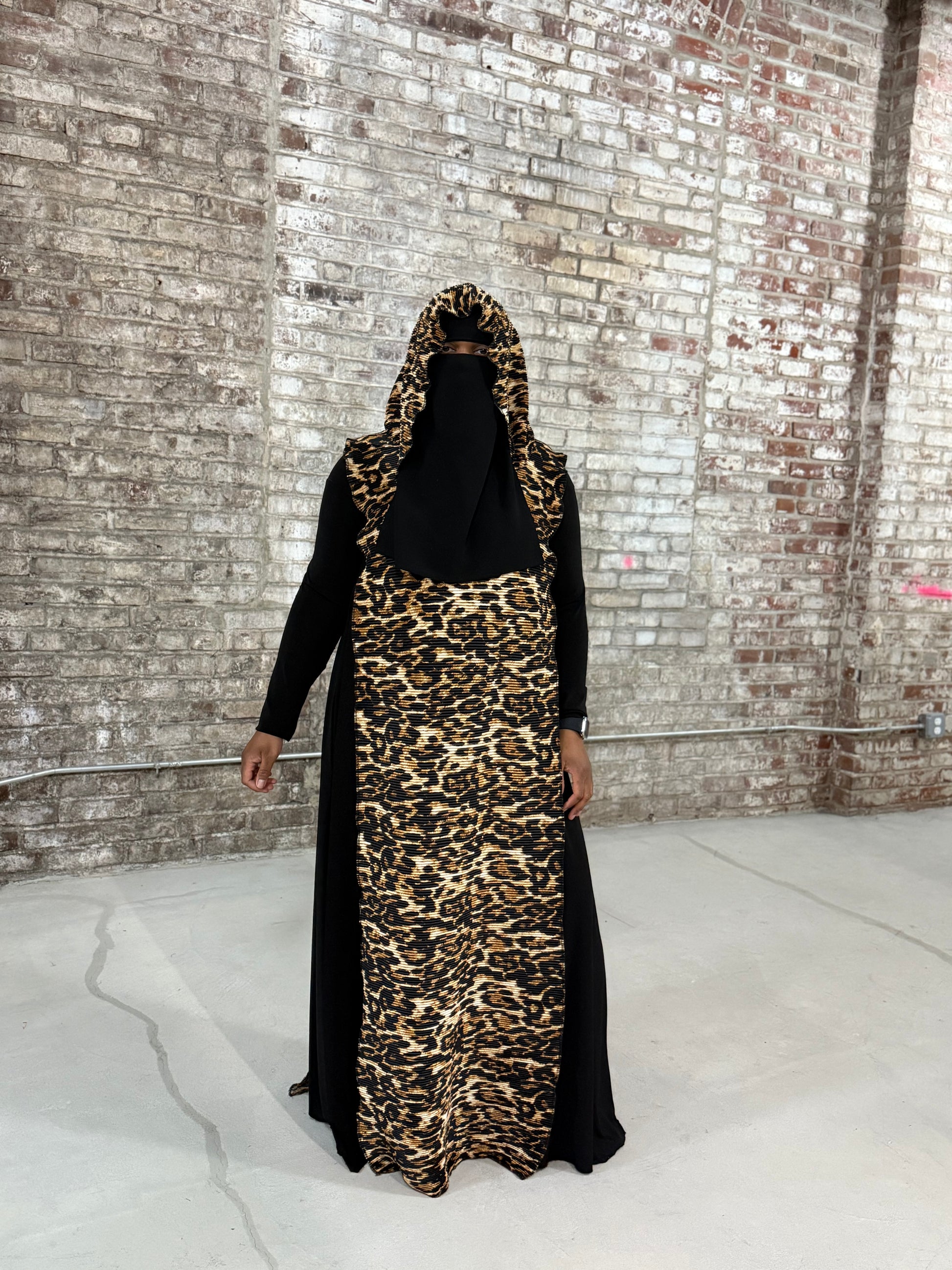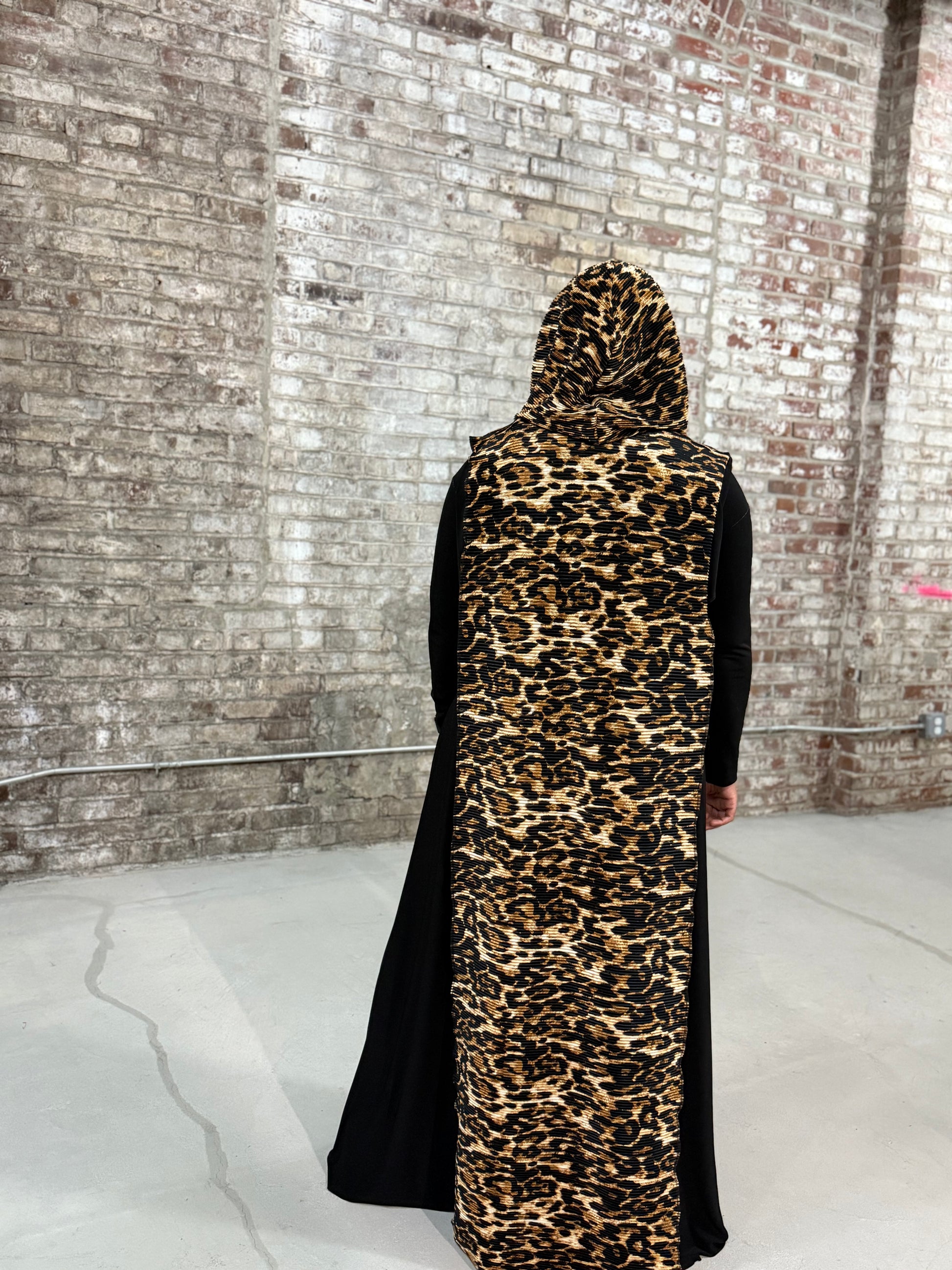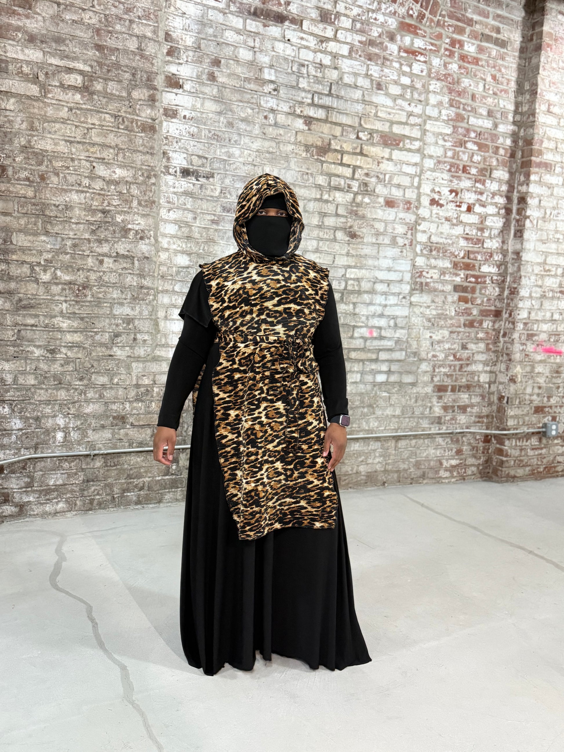 This is our Hasana Overlay that comes with an oversized hood and a belt. Our HASANA OVERLAY can turn any plain garment into a fashion statement. you have the option of out MID-LENGTH OR FULL LENGTH.